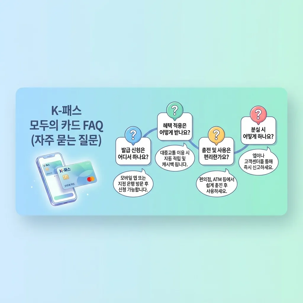 기존 K패스 카드를 그대로 사용하면 되고, 별도 신청 없이 자동으로 가장 유리한 환급 방식이 적용되니 어렵게 생각할 필요가 없습니다. 아직 K패스 카드가 없다면 지금 바로 발급받아 교통비 절약 혜택을 누려보세요!